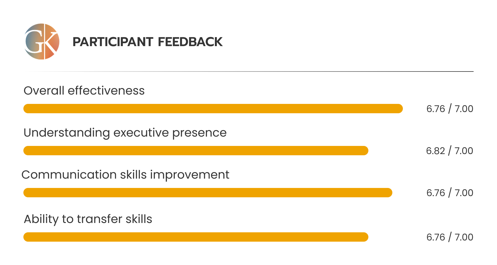 Our programs help organizations support their people, and those people drive the organization's ultimate success. GK's group training works, and we regularly receive feedback like this: